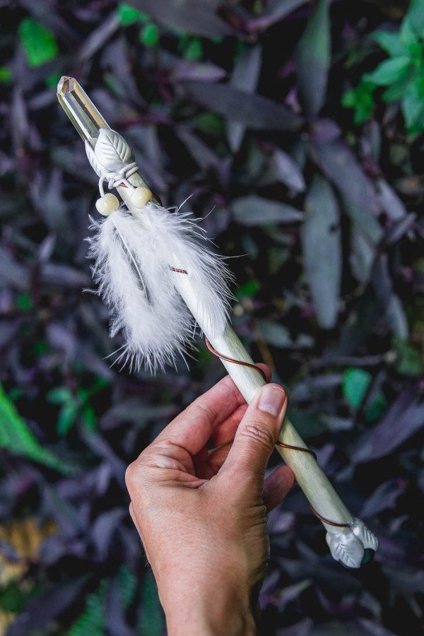 Llevan una punta de cuarzo facetado y en el otro, una amatista. Son de madera de pino y están rodeadas con alambre de cobre como conductor de energía entre tu mano y las piedras. Si hacés algún tipo de terapia holística, tendrás un hermoso complemento para sumar a tus sesiones.